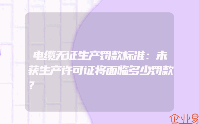 - 电缆无证生产罚款标准:未获生产许可证将面临多少罚款?