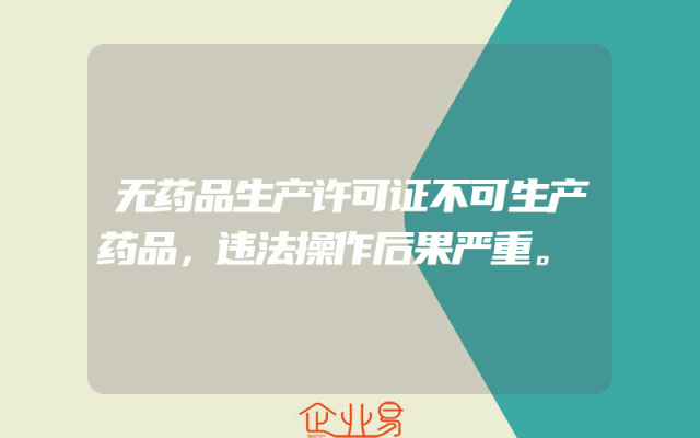 - 无药品生产许可证不可生产药品,违法操作后果严重。
