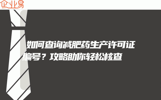- 如何查询减肥药生产许可证编号?攻略助你轻松核查一、了解减肥药生产许可证在探讨如何查询减肥药生产许可证编号之前,我们先要理解何为生产许可证。生产许可证是国家对各类生产企业的重要监管措施,确保企业符合相关法规和标准,能够合法生产销售产品。对于减