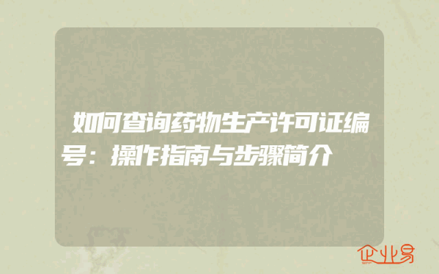 - 如何查询药物生产许可证编号:操作指南与步骤简介