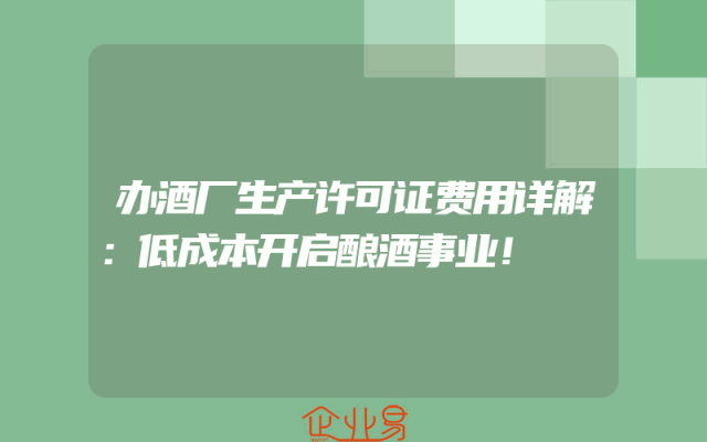 - 办酒厂生产许可证费用详解:低成本开启酿酒事业!