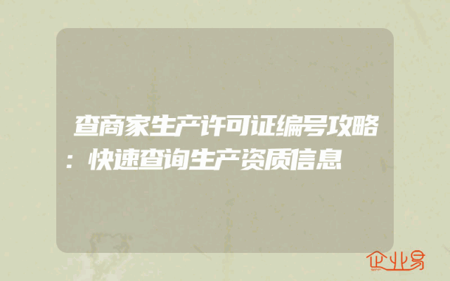 - 查商家生产许可证编号攻略:快速查询生产资质信息