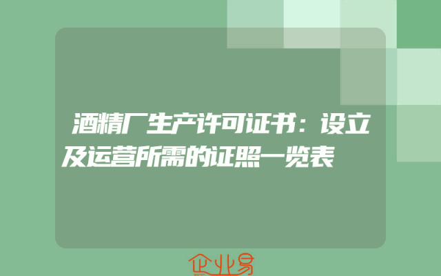 - 酒精厂生产许可证书:设立及运营所需的证照一览表