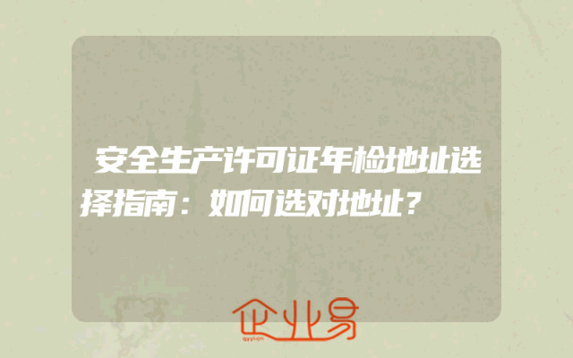 - 安全生产许可证年检地址选择指南:如何选对地址?