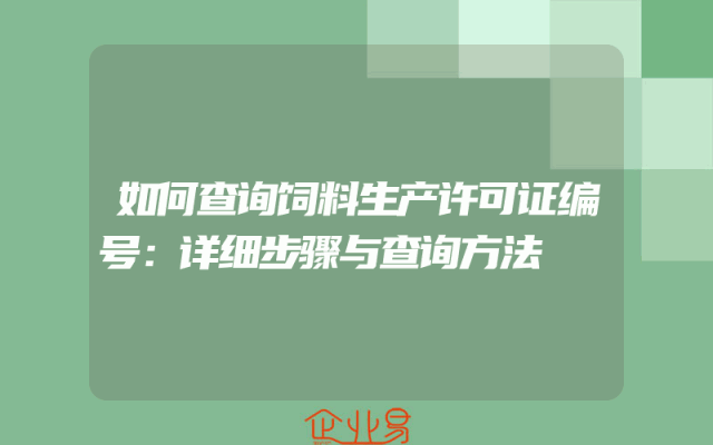 - 如何查询饲料生产许可证编号:详细步骤与查询方法