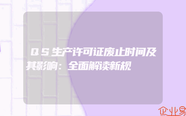 - QS生产许可证废止时间及其影响:全面解读新规一、QS生产许可证废止时间的确定近日,相关部门宣布了QS生产许可证的废止时间,这一变化对于企业界来说无疑是一个重要的信号。QS生产许可证作为过去企业合规生产的重要证明,其废止意味着企业生产许可制度