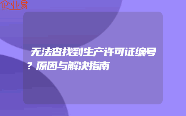 - 无法查找到生产许可证编号原因解析与解决指南一、生产许可证编号查找困难的原因解析在生产许可证管理中,有时会出现无法查找到生产许可证编号的情况。这背后可能涉及多方面的原因。首先,可能是由于企业未能妥善保存许可证信息,导致在需要查询时无法提供有效