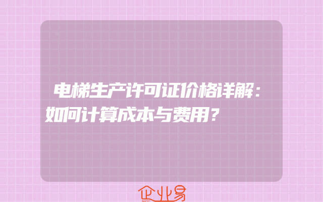- 电梯生产许可证价格详解:如何计算成本与费用?