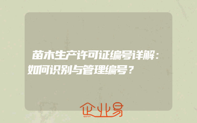 - 苗木生产许可证编号详解:如何识别与管理编号?