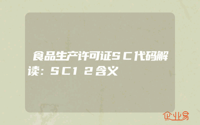 - 食品生产许可证SC代码解读:SC12含义解析一、SC代码概述在食品行业,企业的生产许可证标识SC代码是一种重要的资质证明。SC代码是国家对食品生产企业进行监管的一种方式,通过该代码可以了解到企业的生产资质、产品类别等重要信息。其中,SC12