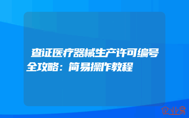 - 查证医疗器械生产许可编号全攻略:简易操作教程