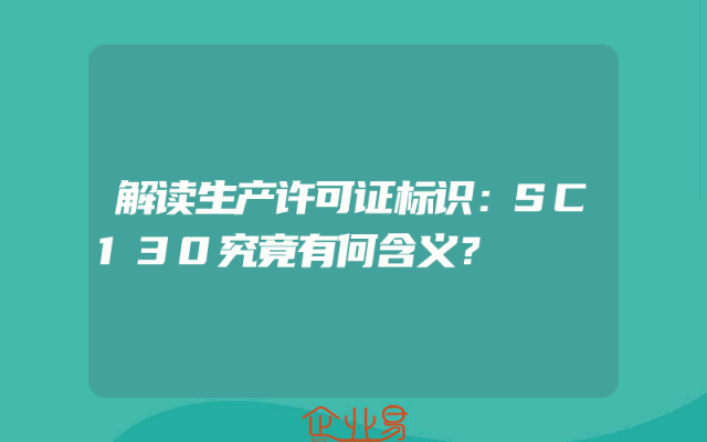 - 解读生产许可证标识:SC130的含义一、生产许可证标识概述在中国,生产许可证是国家对生产企业实施监管的一种方式,旨在确保企业合法经营和生产安全。SC130标识作为生产许可证的一部分,具有重要的含义和实际应用价值。二、SC130标识的具体含义
