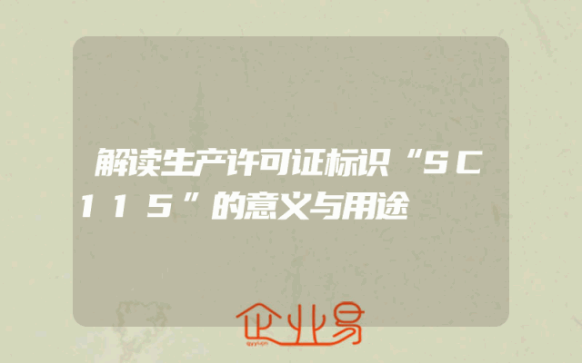 - 解读生产许可证标识“SC115”的意义与用途一、生产许可证标识概述在我国,生产许可证是企业合法生产的重要凭证,标志着企业具备了生产特定类别产品的条件和资质。生产许可证标识“SC115”便是其中的一种特定编码,它代表着企业的生产范围和类别。该
