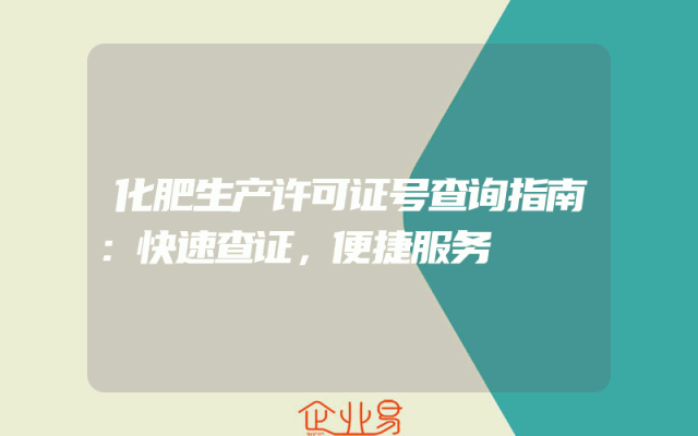 - 化肥生产许可证号查询指南:快速查证,便捷服务