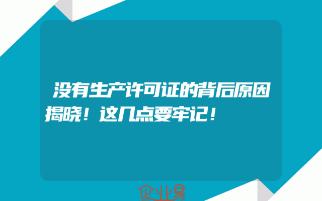 - 没有生产许可证的背后原因揭晓!这几点要牢记!一、引言随着市场经济的发展,生产许可证成为了企业合法经营的必备证件之一。然而,仍然有部分企业因种种原因未能获得生产许可证,这使得他们面临着较大的法律风险。接下来我们将详细分析背后导致企业未能获取生