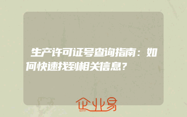 - 生产许可证号查询指南:如何快速找到相关信息?
