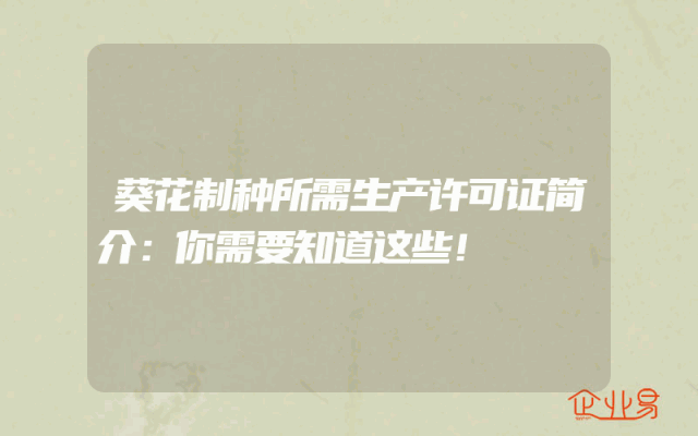 - 葵花制种所需生产许可证简介:你需要知道这些!