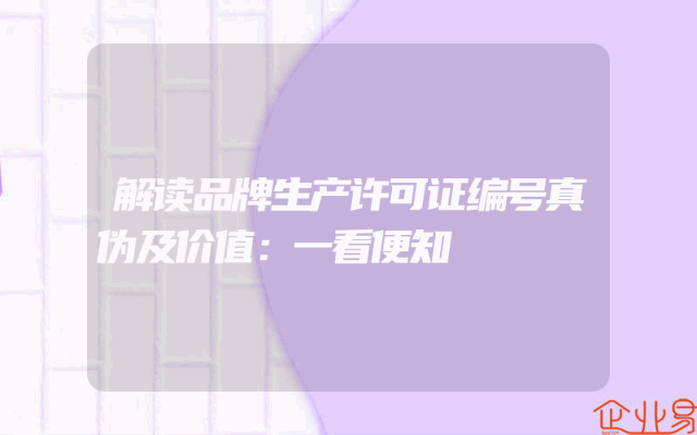 - 解读品牌生产许可证编号真伪及价值:一看便知身处企业服务行业,品牌生产许可证的解读无疑是日常工作中的重要一环。本文将针对品牌生产许可证编号的真伪识别及其价值评估进行详尽解读,助您轻松掌握相关要点。一、了解许