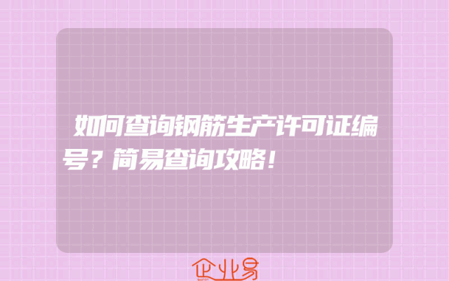 - 如何查询钢筋生产许可证编号?简易查询攻略!