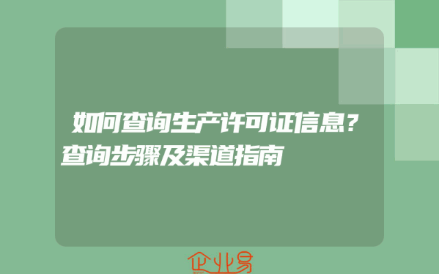 - 如何查询生产许可证信息?查询步骤及渠道指南