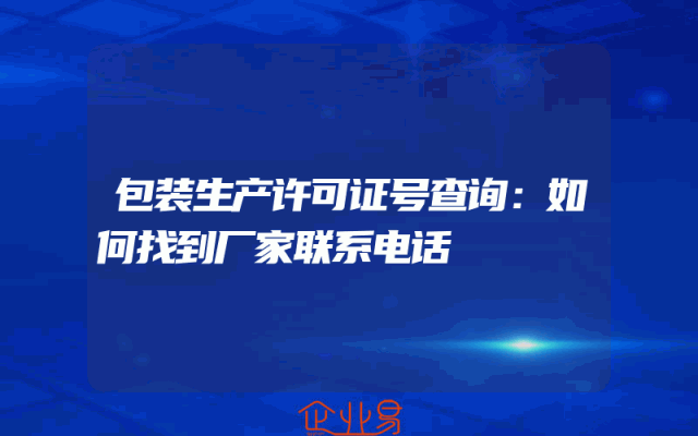 - 包装生产许可证号查询:如何找到厂家联系电话