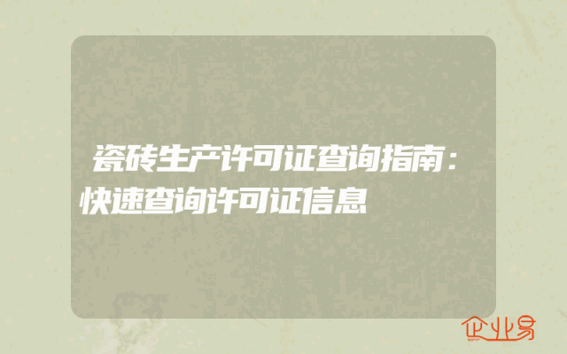 - 瓷砖生产许可证查询指南:快速查询许可证信息