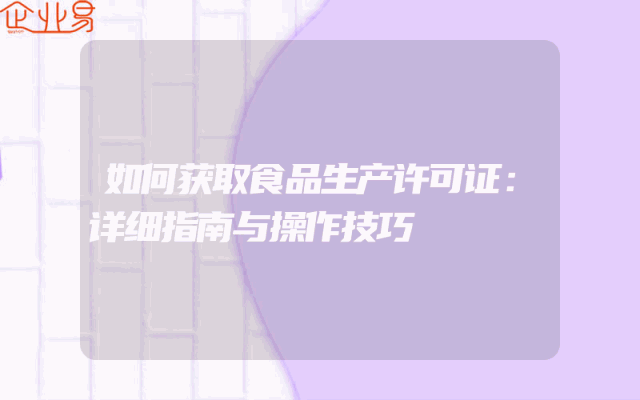 - 如何获取食品生产许可证:详细指南与操作技巧