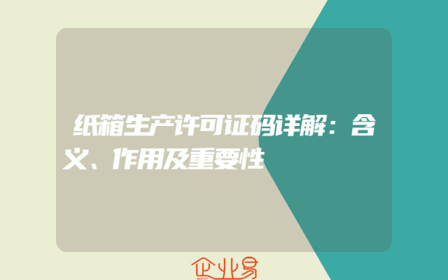 - 纸箱生产许可证码详解:含义、作用及重要性