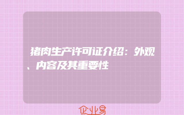 - 猪肉生产许可证介绍:外观、内容及其重要性