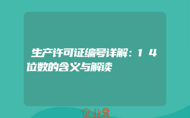 - 生产许可证编号详解:14位数的含义与解读