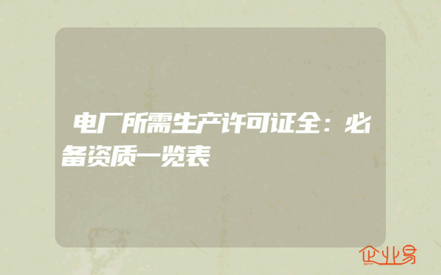 - 电厂所需生产许可证全:必备资质一览表