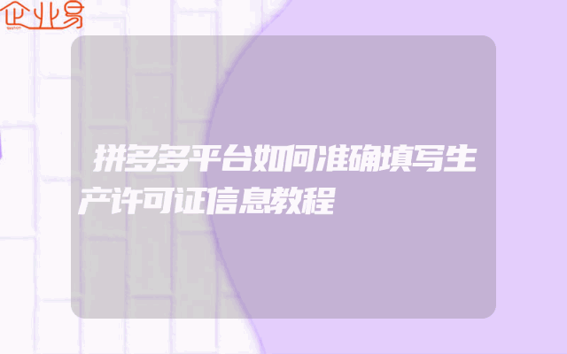 - 拼多多平台如何准确填写生产许可证信息教程了解生产许可证与平台要求在拼多多平台上开设店铺并发布商品,对于生产型企业来说,准确填写生产许可证信息是非常必要的步骤。首先需要明确的是,生产许可证是国家为规范企业生产行为、确保产品质量安全而设