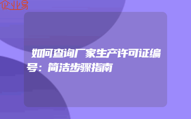 - 如何查询厂家生产许可证编号:简洁步骤指南