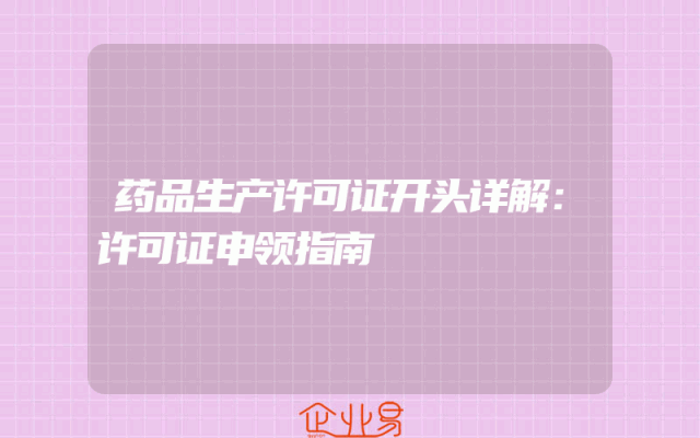 - 药品生产许可证开头详解:许可证申领指南一、药品生产许可证概述药品生产许可证是药品生产企业的合法凭证,也是企业生产经营活动的必要资质。获得该许可证后,企业方可进行药品的生产、加工及流通活动。本文旨在详细介绍药品生产许可证的申领流程及相关要点。