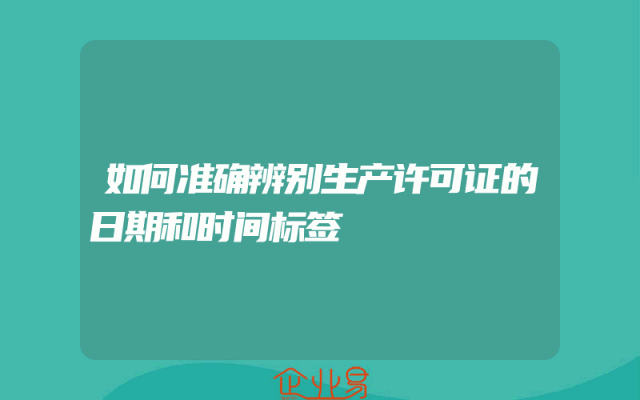 - 如何准确辨别生产许可证的日期和时间标签一、了解生产许可证基本知识生产许可证是国家为规范企业生产行为,保障公共安全而实施的一种行政许可制度。在生产许可证上,日期和时间标签是证明企业是否合法生产、产品是否合规上市的重要依据。因此,了解生产许可证