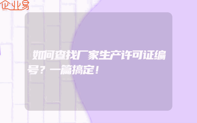- 如何查找厂家生产许可证编号?一篇搞定!