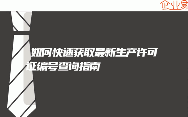 - 如何快速获取最新生产许可证编号查询指南一、了解生产许可证及其重要性生产许可证是国家为规范企业生产行为,保障社会公共利益及人民生命财产安全而设立的重要凭证。对于企业而言,获取生产许可证是合法经营的必备条件之一。随着政策的不断更新,快速获取最新
