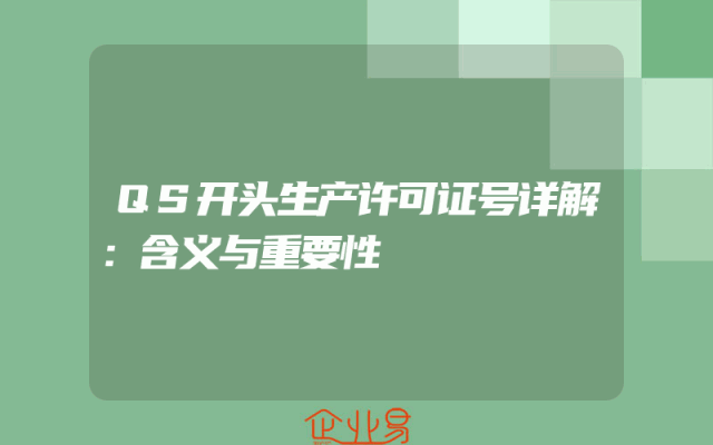 - QS开头生产许可证号详解:含义与重要性一、QS生产许可证号概述在中国的企业服务行业中,QS开头的生产许可证号是一种重要的行业准入标识。这个许可证号不仅代表着企业生产的合法资质,也是产品质量和安全的重要保障。该许可证是针对食品、药品、特种设备