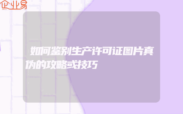 - 如何鉴别生产许可证图片真伪的攻略与技巧一、明确生产许可证真实样本特点在开始鉴别生产许可证图片真伪之前,首先需要了解真实生产许可证的常规样式和特征。可以通过互联网搜索,找到正规渠道发布的生产许可证样本,了解其排版格式、徽标、水印、安全线等特性