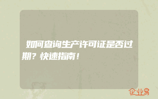 - 如何查询生产许可证是否过期?快速指南!