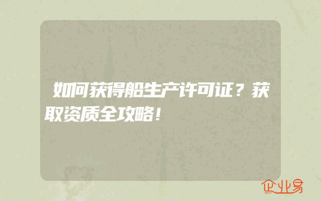 - 如何获得船生产许可证?获取资质全攻略!