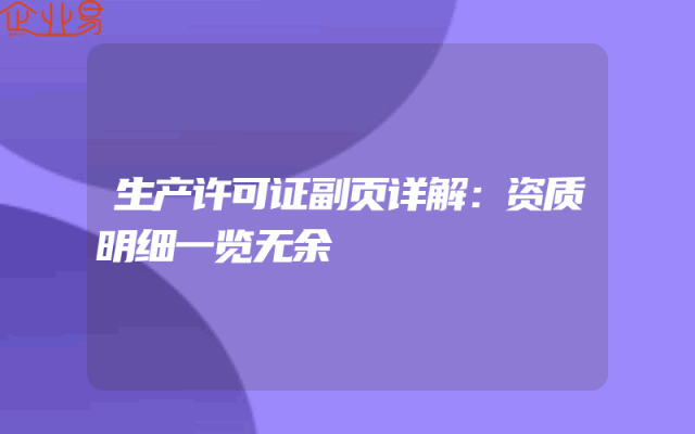 - 生产许可证副页详解:资质明细一览无余一、生产许可证副页概述生产许可证副页是生产许可证的重要组成部分,详细列出了企业的各项资质和许可范围。作为企业在特定行业从事生产经营活动的资格证明,它体现了企业的合法