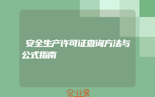 - 安全生产许可证查询方法与公式解析指南一、安全生产许可证的重要性在现代企业管理中,安全生产许可证是企业合法经营的重要凭证,也是企业承担社会责任的重要体现。持有有效的安全生产许可证,不仅能保障企业的正常运营,还能确保员工及社会的安全。二、安全生