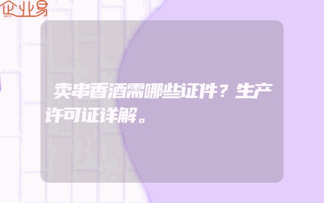 - 卖串香酒需哪些证件?生产许可证详解一、引言随着经济的发展和市场的繁荣,串香酒作为一种特色酒类,受到了广大消费者的喜爱。想要合法经营串香酒,必须了解相关的证件要求和流程。本文将详细解析生产串香酒所需的证件及生产许可证的相关知识。二、生