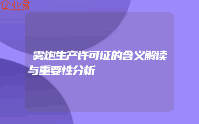 - 雾炮生产许可证的含义解读与重要性分析