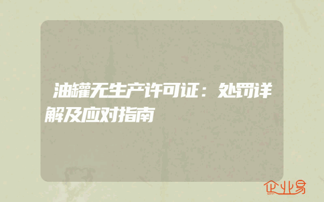 - 油罐无生产许可证:处罚详解及应对指南一、无生产许可证的油罐面临的处罚在现代工业领域,油罐作为重要的存储设备,其生产过程必须符合国家相关的法规标准。对于未取得生产许可证的油罐产品,相关部门会进行严格审查并依法进行处罚。通常情况下,无证生产的油