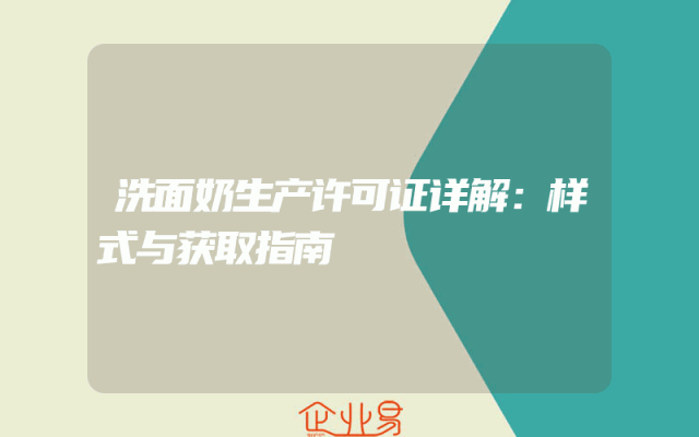 - 洗面奶生产许可证详解:样式与获取指南一、生产许可证样式简述洗面奶生产许可证是由相关政府部门颁发的,证明企业具备生产洗面奶等化妆品的合法资质。许可证的样式通常包括以下几个部分:证书编号、企业名称、企业地址、许可范围(如洗面奶生产)、许可证的有