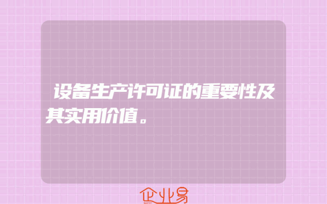 - 设备生产许可证的重要性及其实用价值一、设备生产许可证的重要性在当今社会,企业为了保障产品质量和消费者权益,各类证照和许可证的办理显得尤为重要。其中,设备生产许可证是众多企业不可或缺的一项资质。设备生产许可证是对企业生产设备、生产工艺、产品质