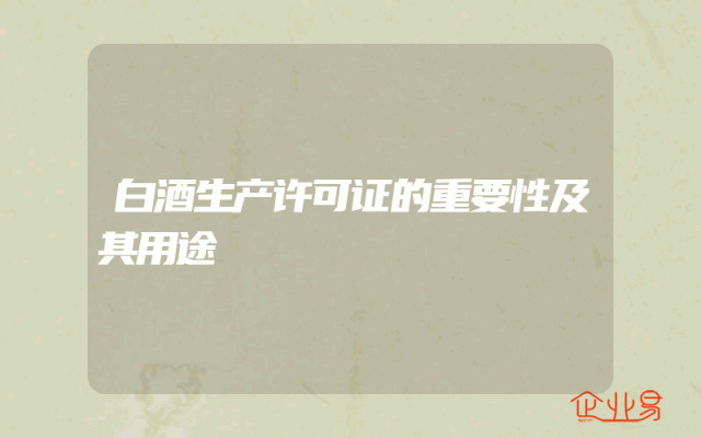 - 白酒生产许可证的重要性及其用途解析一、白酒生产许可证的概念与意义白酒生产许可证是国家针对白酒生产企业实施的一种资质认证,是确保企业合法生产和经营白酒的重要凭证。它不仅证明了企业具备生产白酒的资质,更是企业进入白酒市场的“通行证”。在