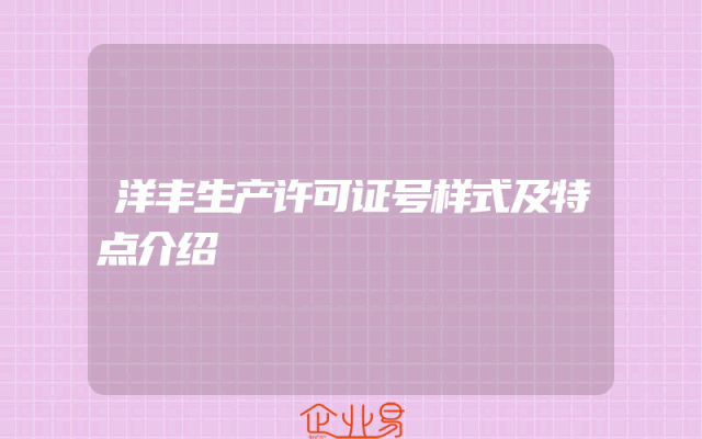 - 洋丰生产许可证号样式解析及特点介绍一、洋丰生产许可证号样式概述洋丰生产许可证号是企业生产合法性的重要凭证,其样式和编号规则反映了政府对于企业管理的要求和行业特点。许可证号的样式通常包括文字与数字的组合,设计严谨,具有一定的防伪功能。二、许可
